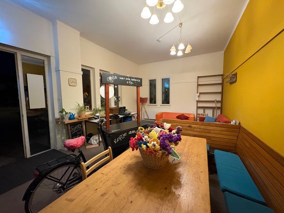 Voorlopig is dit opslag en richten we pas later onze huiskamer weer in.
